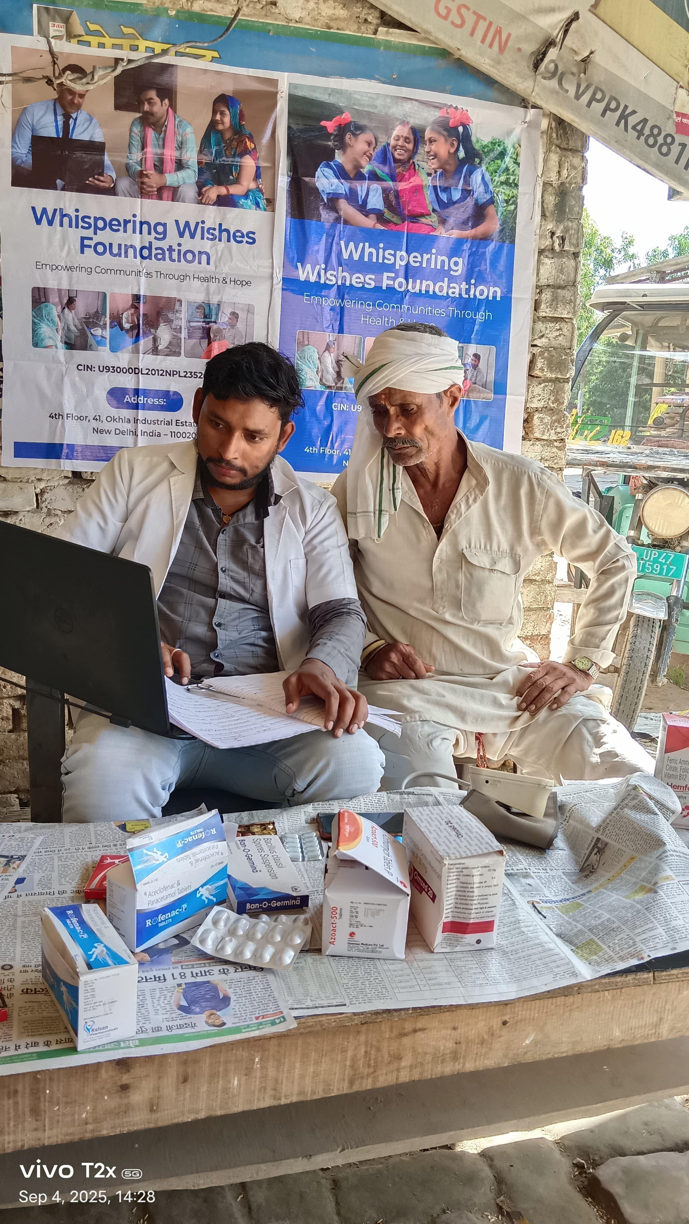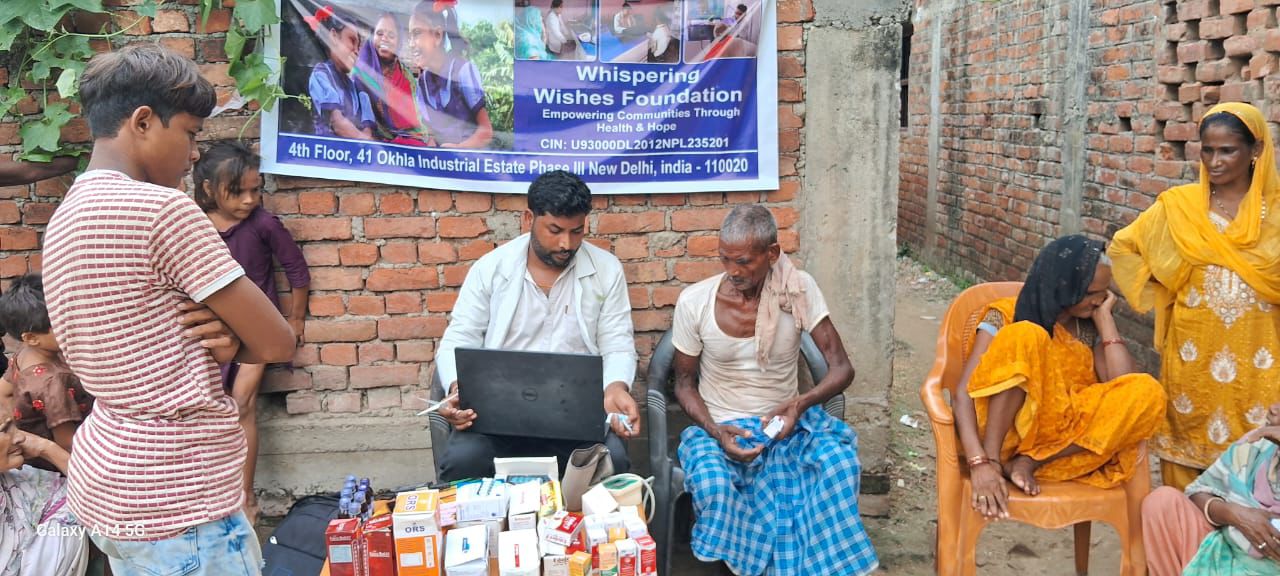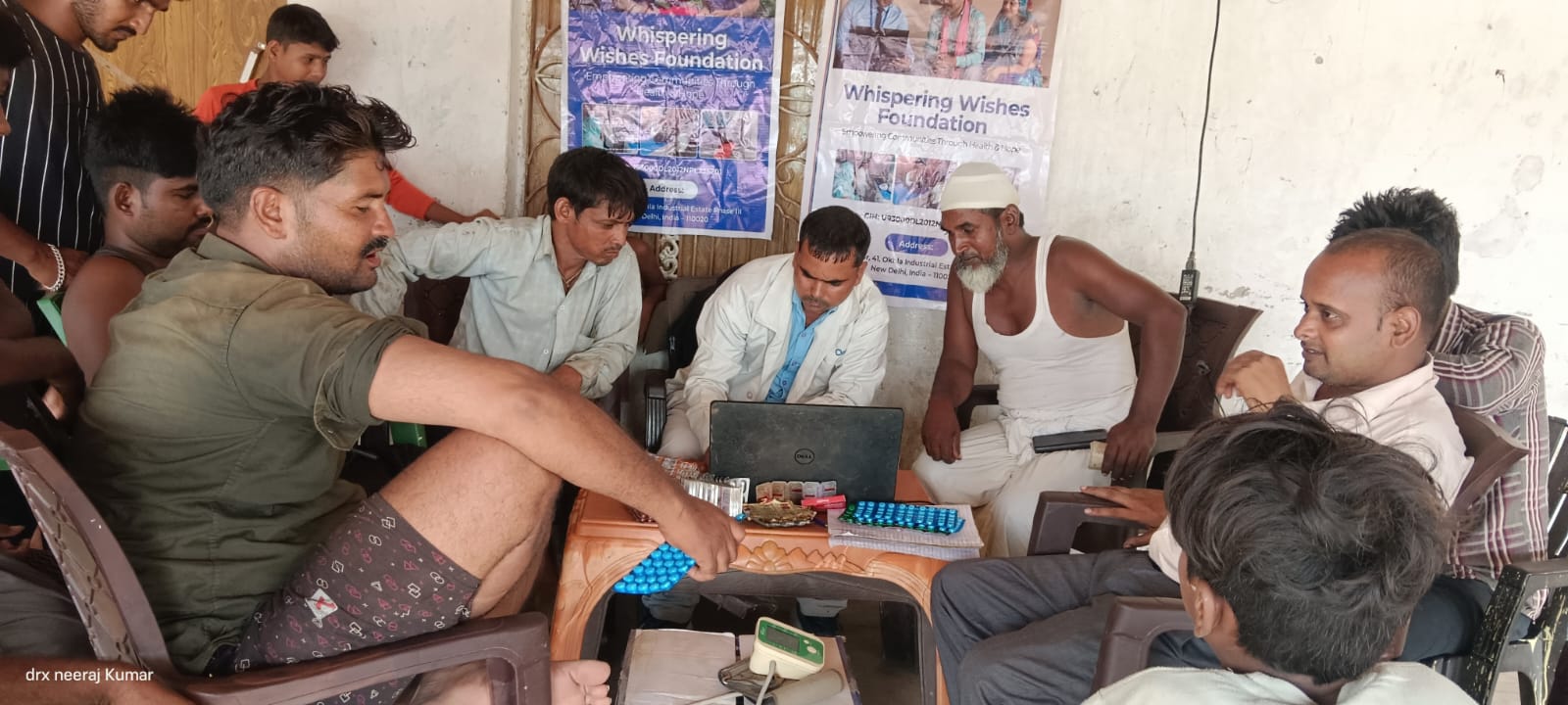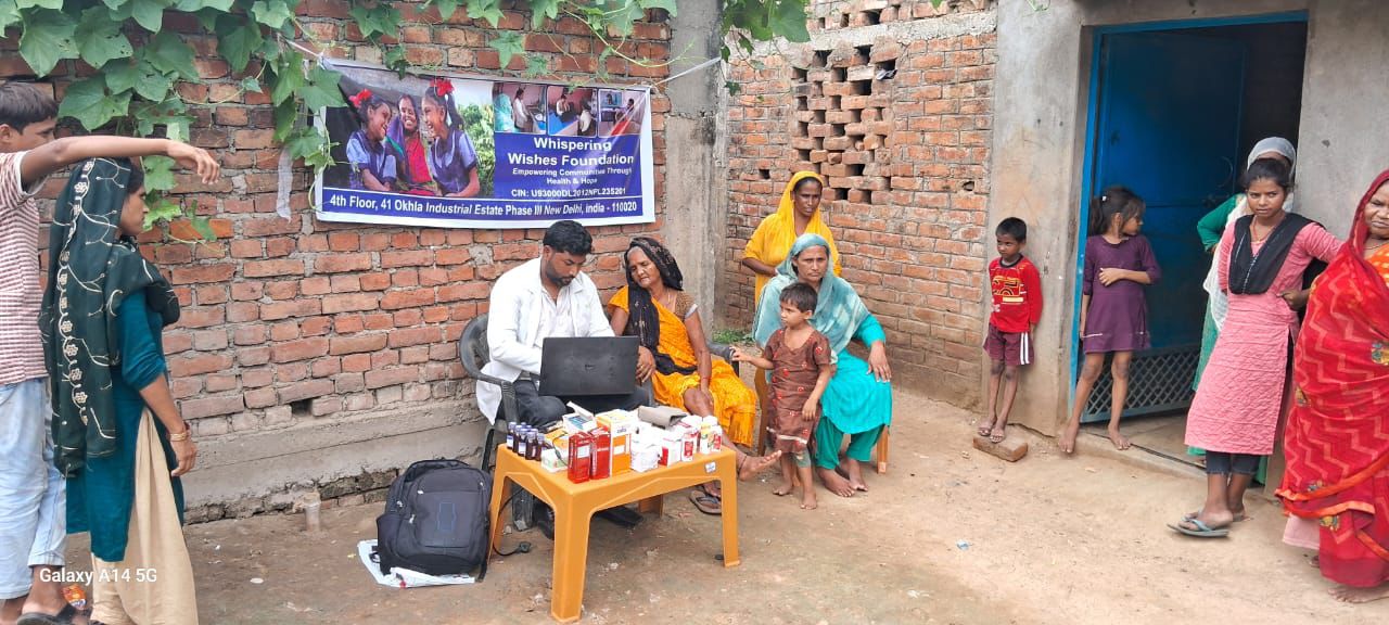 Facilitating doctor consultations for local residents at a Health Camp in BalrampurDigital Health check-up and medicines being distributed to locals at a Health CampWhispering Wishes Foundation provides medical care to locals Women and children get their health checked through video consultations at medical camp in UP
